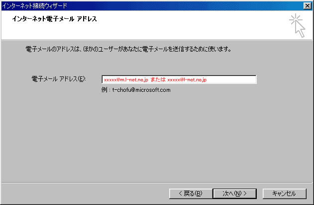 12. 「インターネット電子メールアドレス」の画面が表示されますので下記のように設定してください。