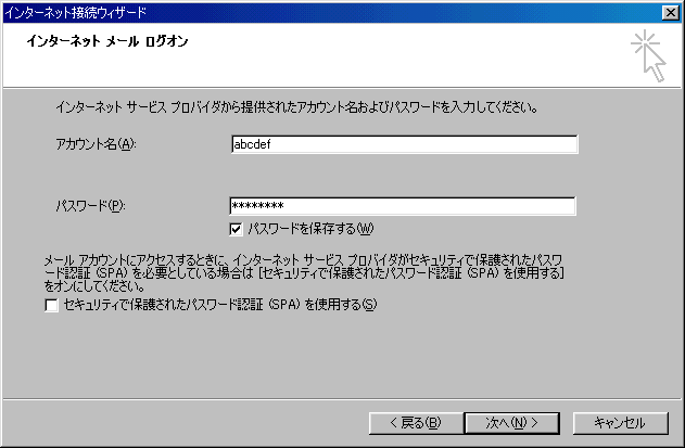 14.「電インターネットメールログオン」の画面が表示されますので下記のように設定してください。